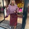 Vest Moniek aubergine - roze streep