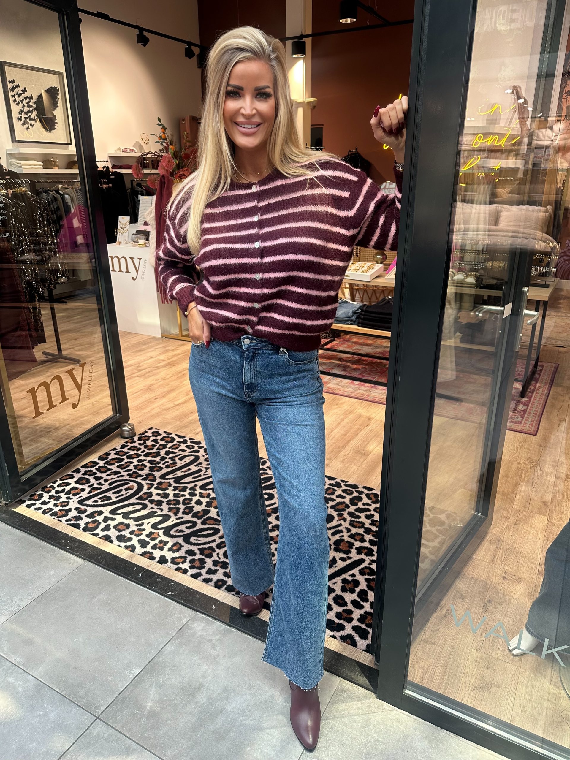 Vest Moniek aubergine – roze streep