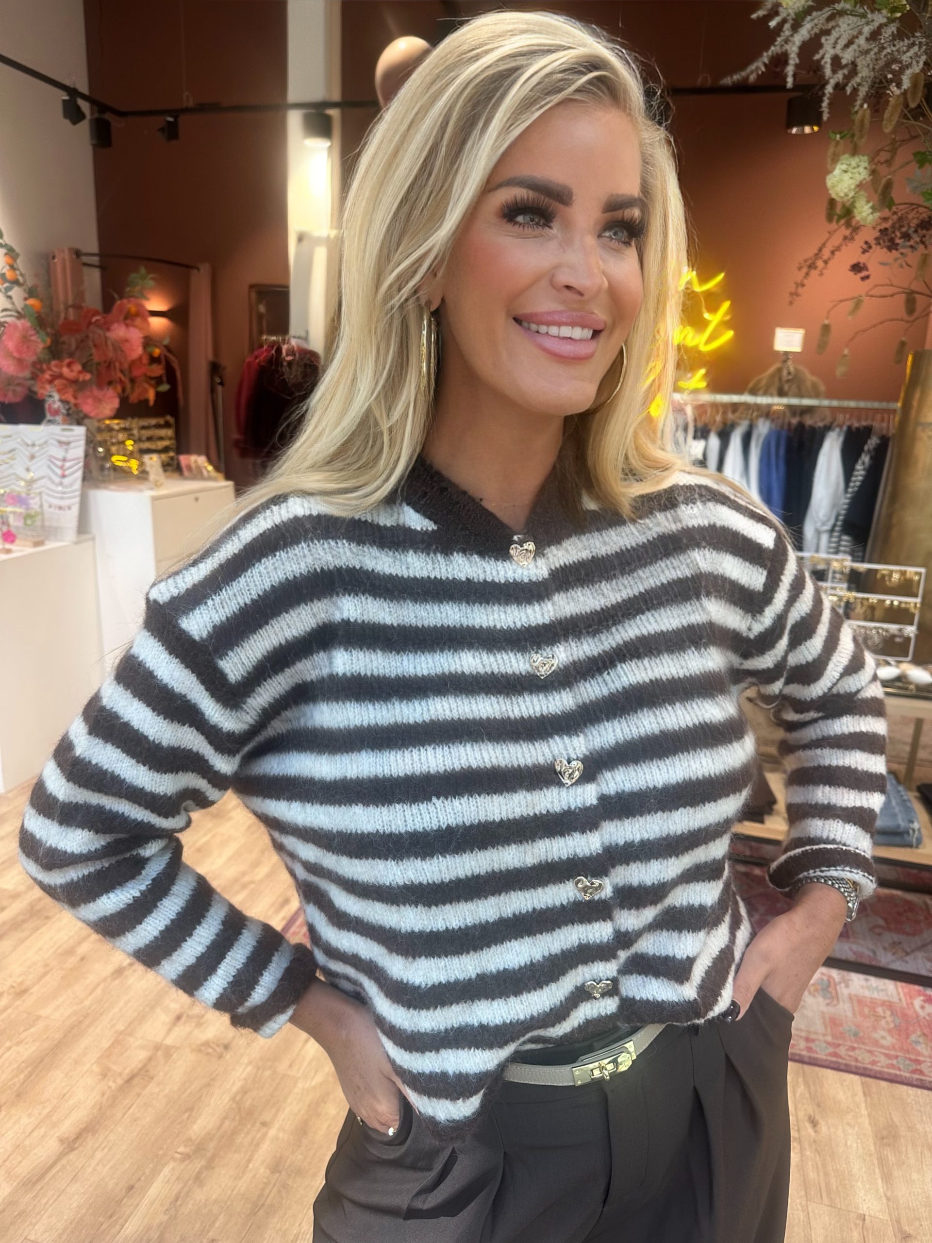 Vest Moniek bruin/beige streep